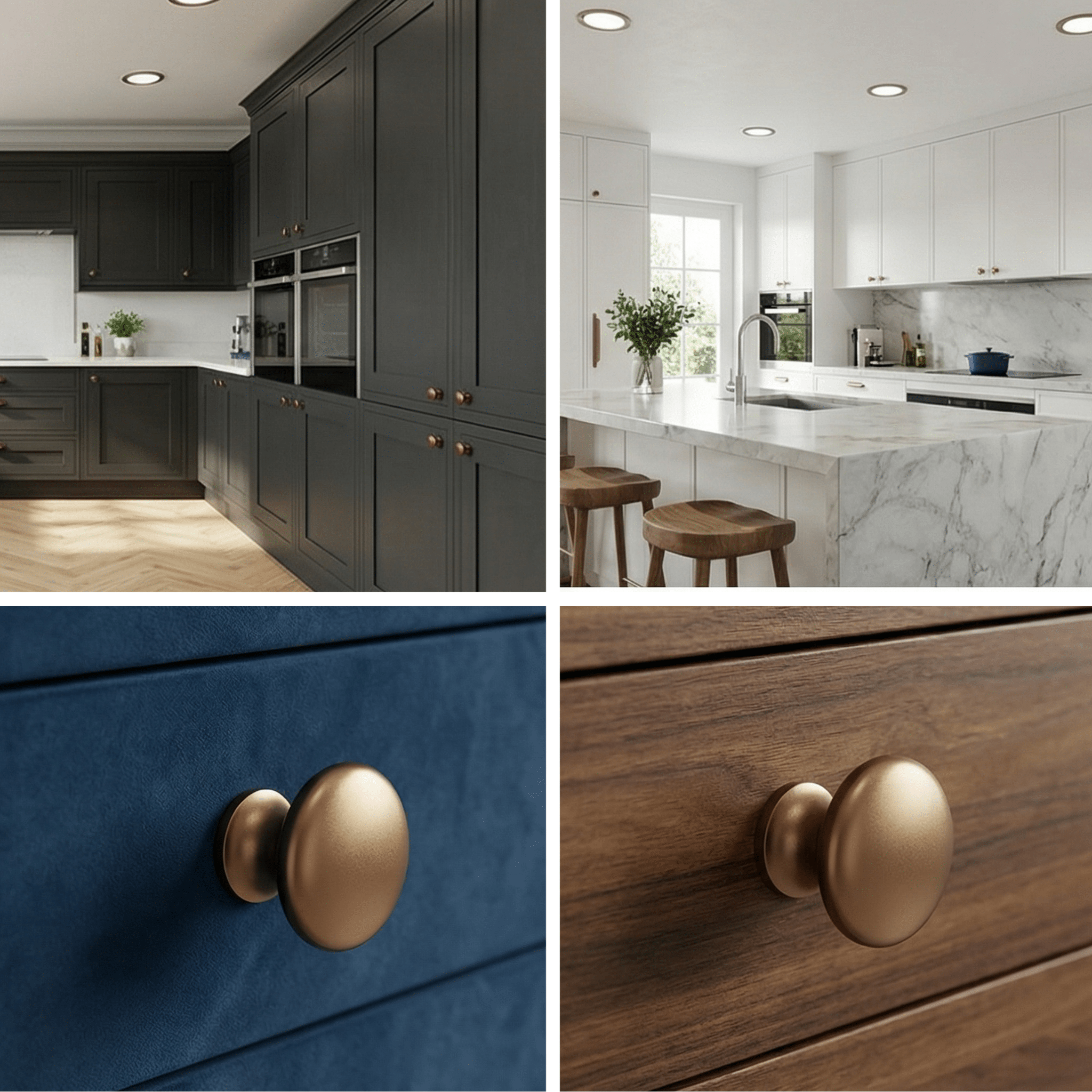 Bij knoppen let u vooral op de diameter, hoogte en de diameter van de voet. Kies wat prettig in de hand ligt en visueel past bij uw fronten.